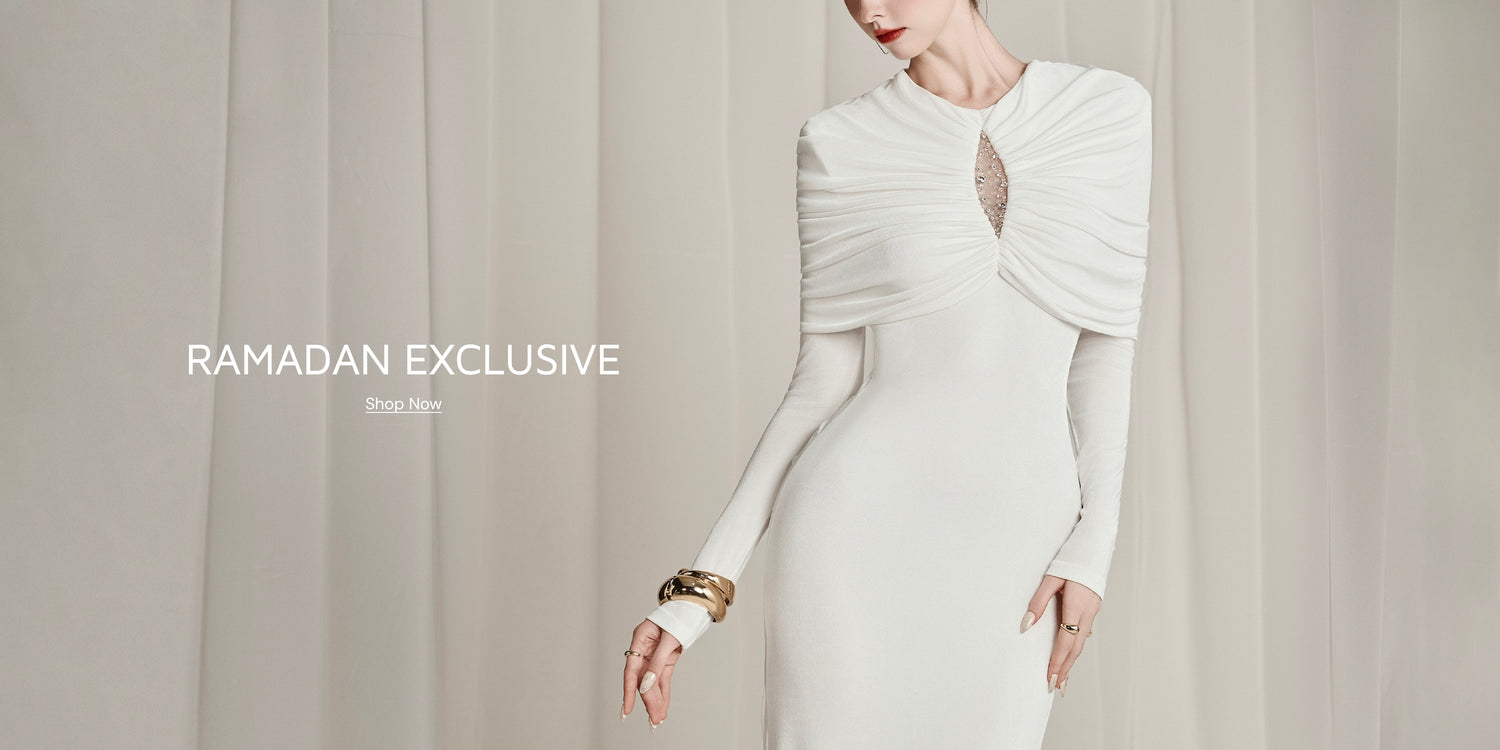 LUNAVEX Draped Cape Column Maxi Dress