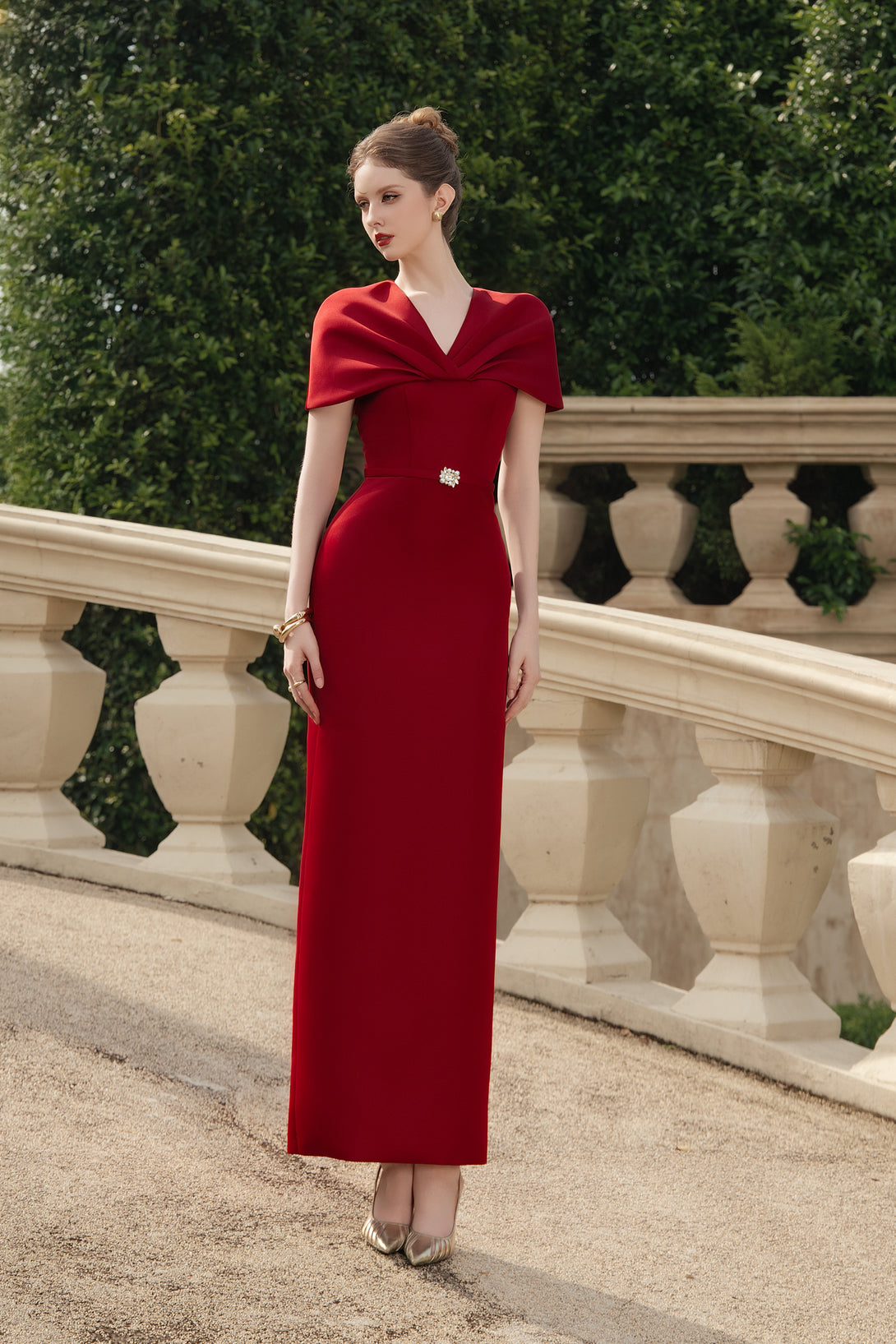 • Draped shoulders with cape