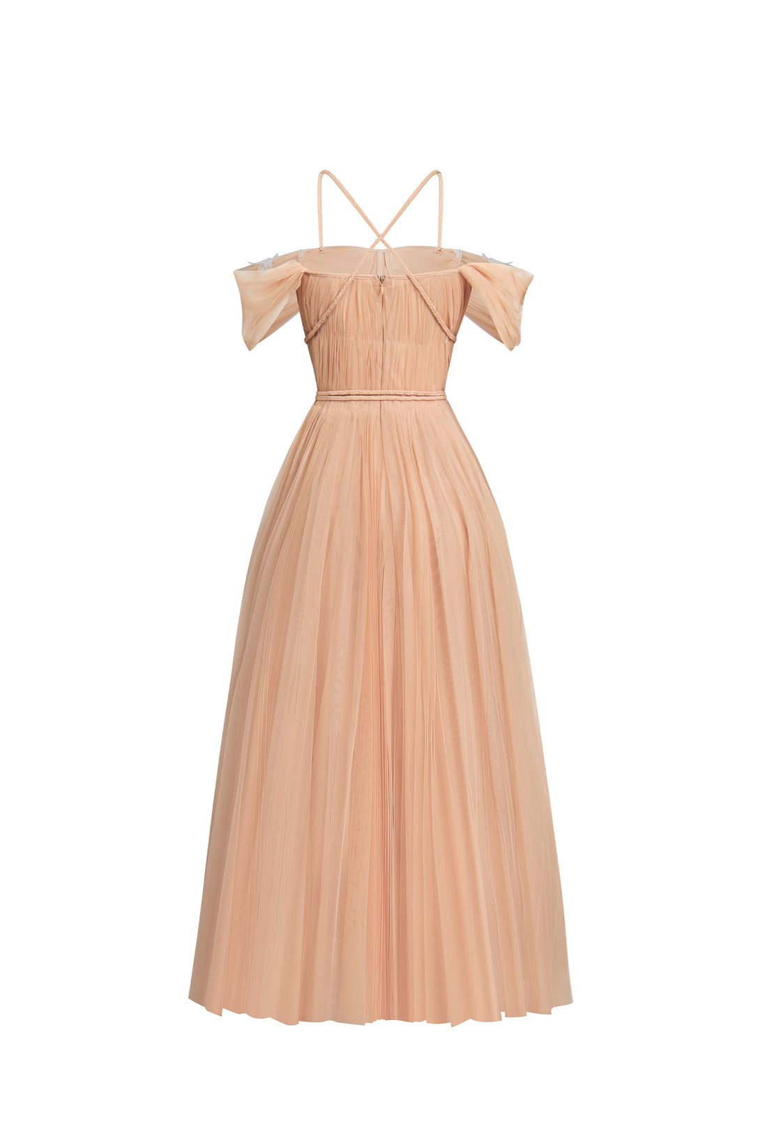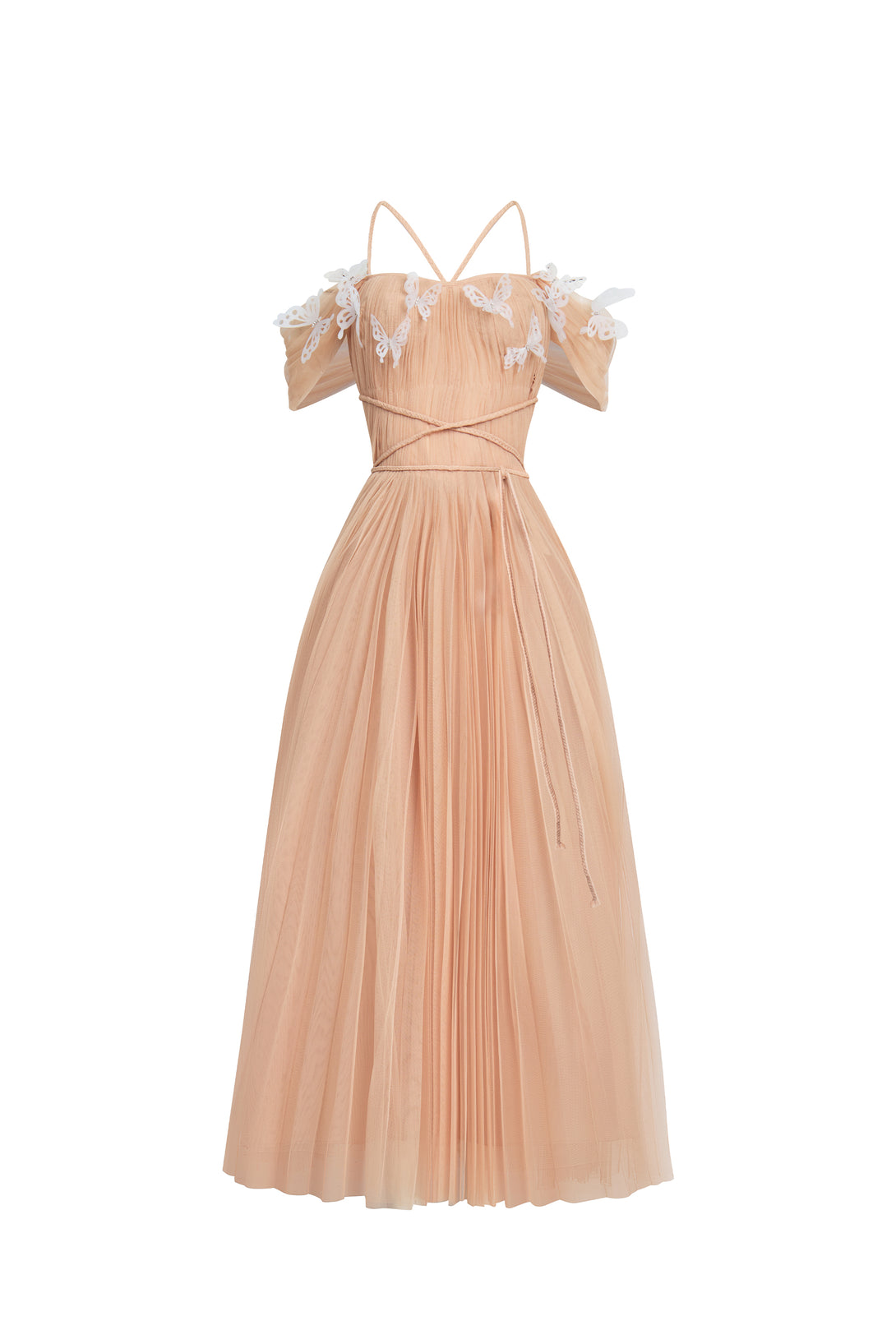 The signature layered pleats and 3D butterfly embellishments remain intact in a fresh form, with a creatively refined silhouette symbolizing a butterfly.