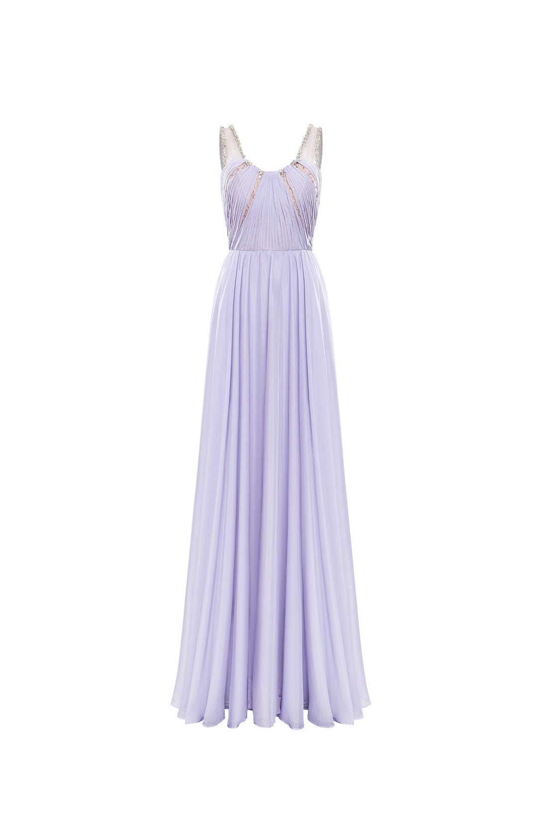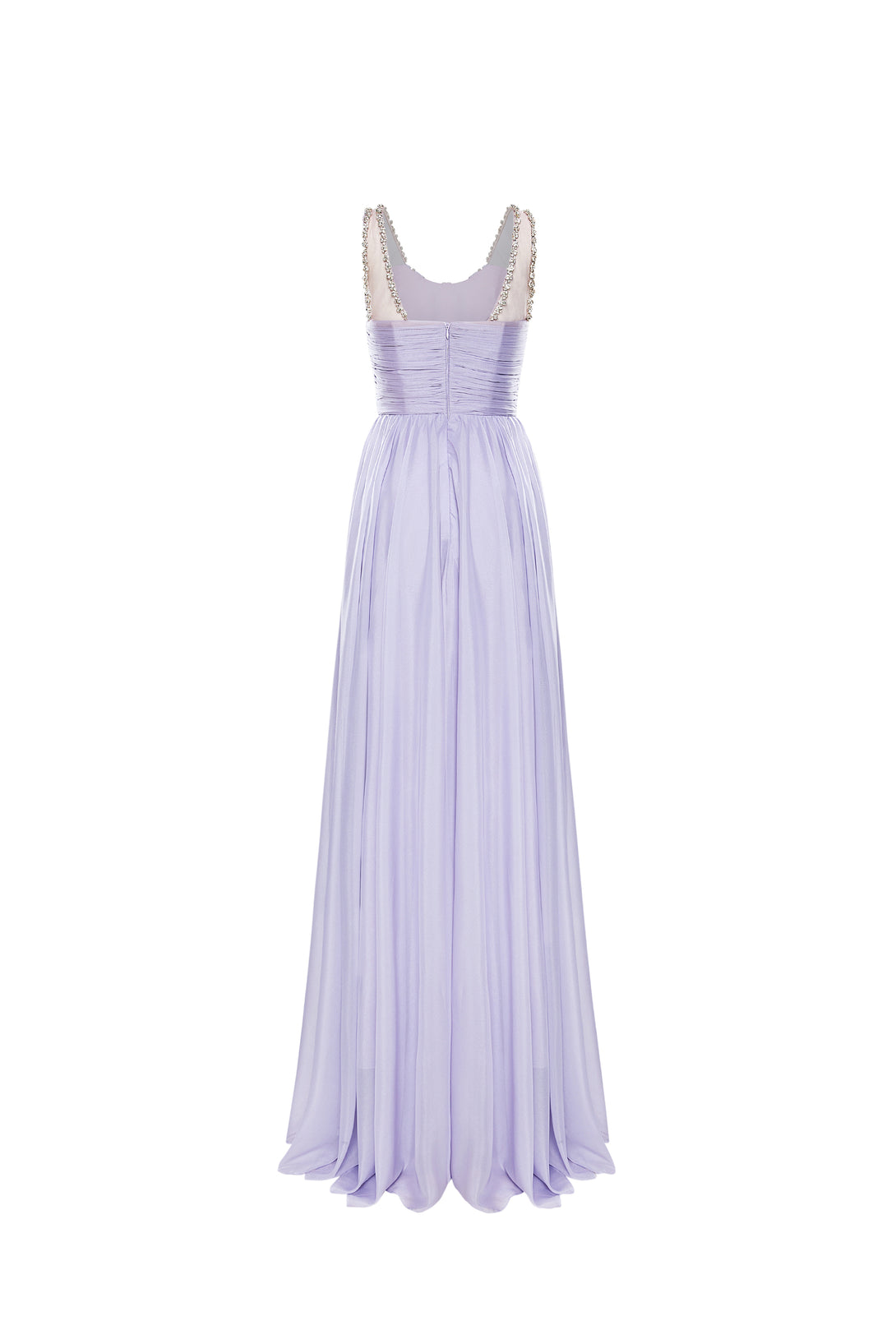 • Sweetheart neckline with pearl-embellished straps