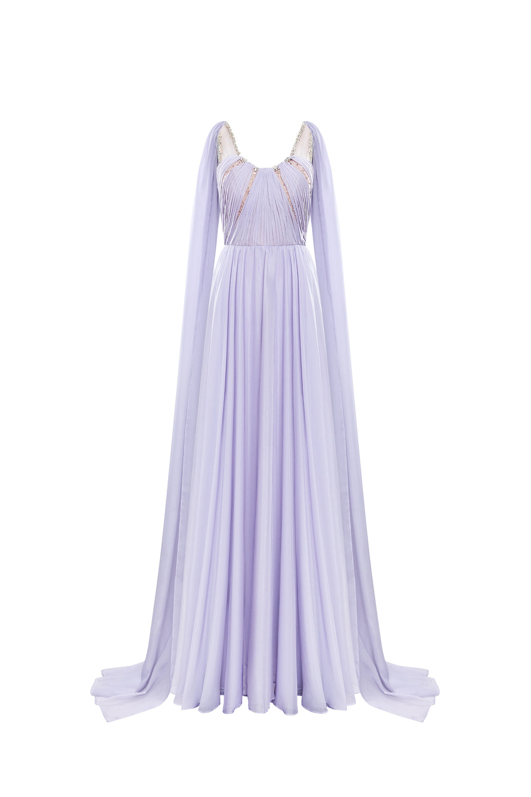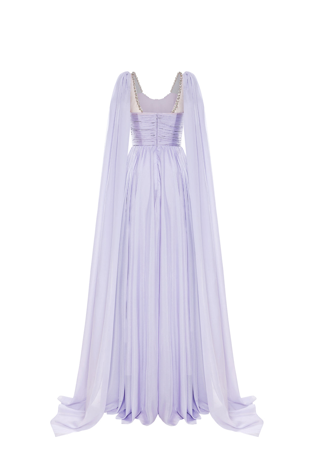 VIOLETTE Draped Chiffon Gown with Sheer Cape